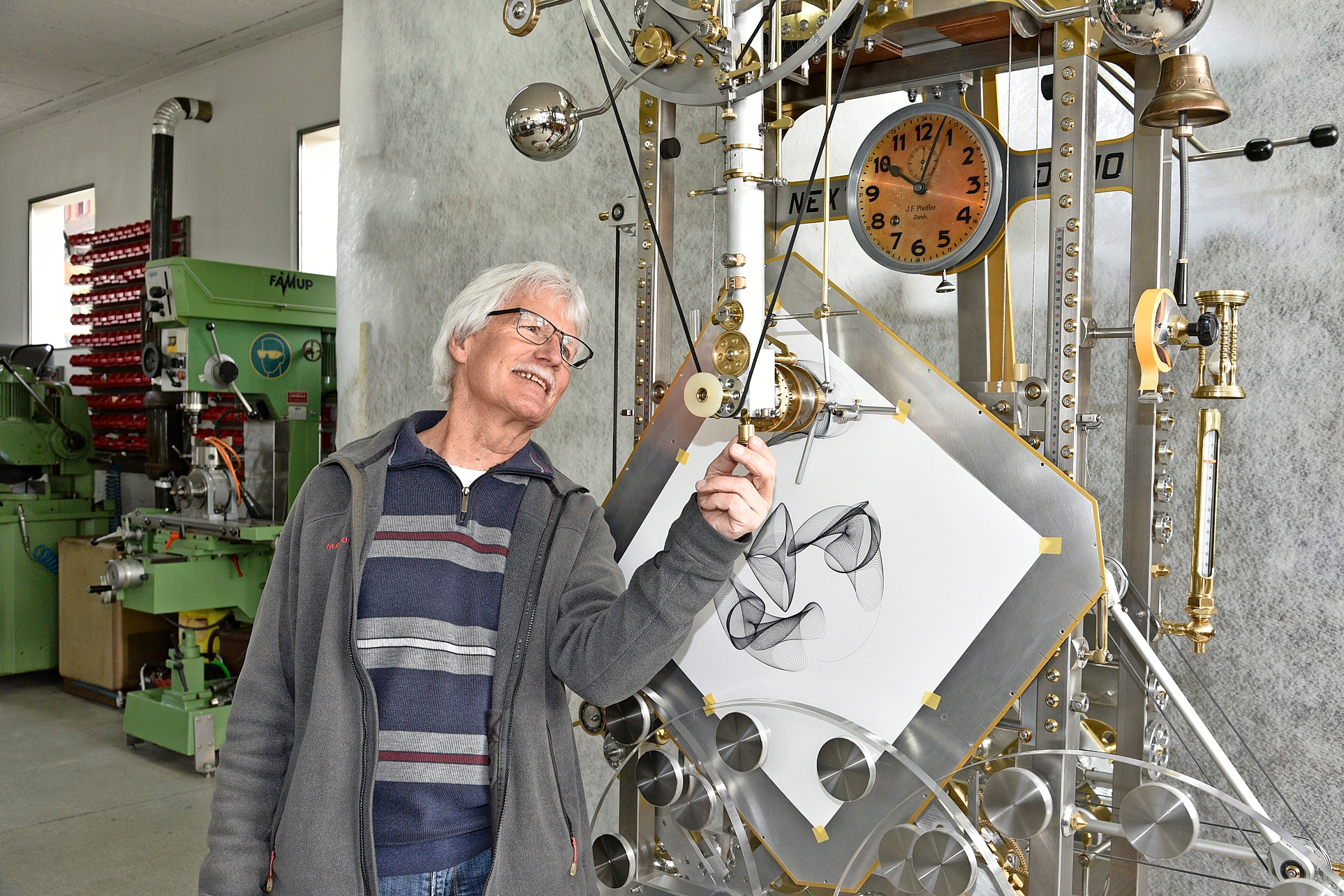 Zeichnungsmaschinen sind mechanische Kunstwerke, die selbst Kunst erschaffen. Mike Stutz hat als gelernter Mechaniker seine Idee einer eignen Maschine umgesetzt. Dies in vielen Arbeitsstunden und mit grosser Passion.