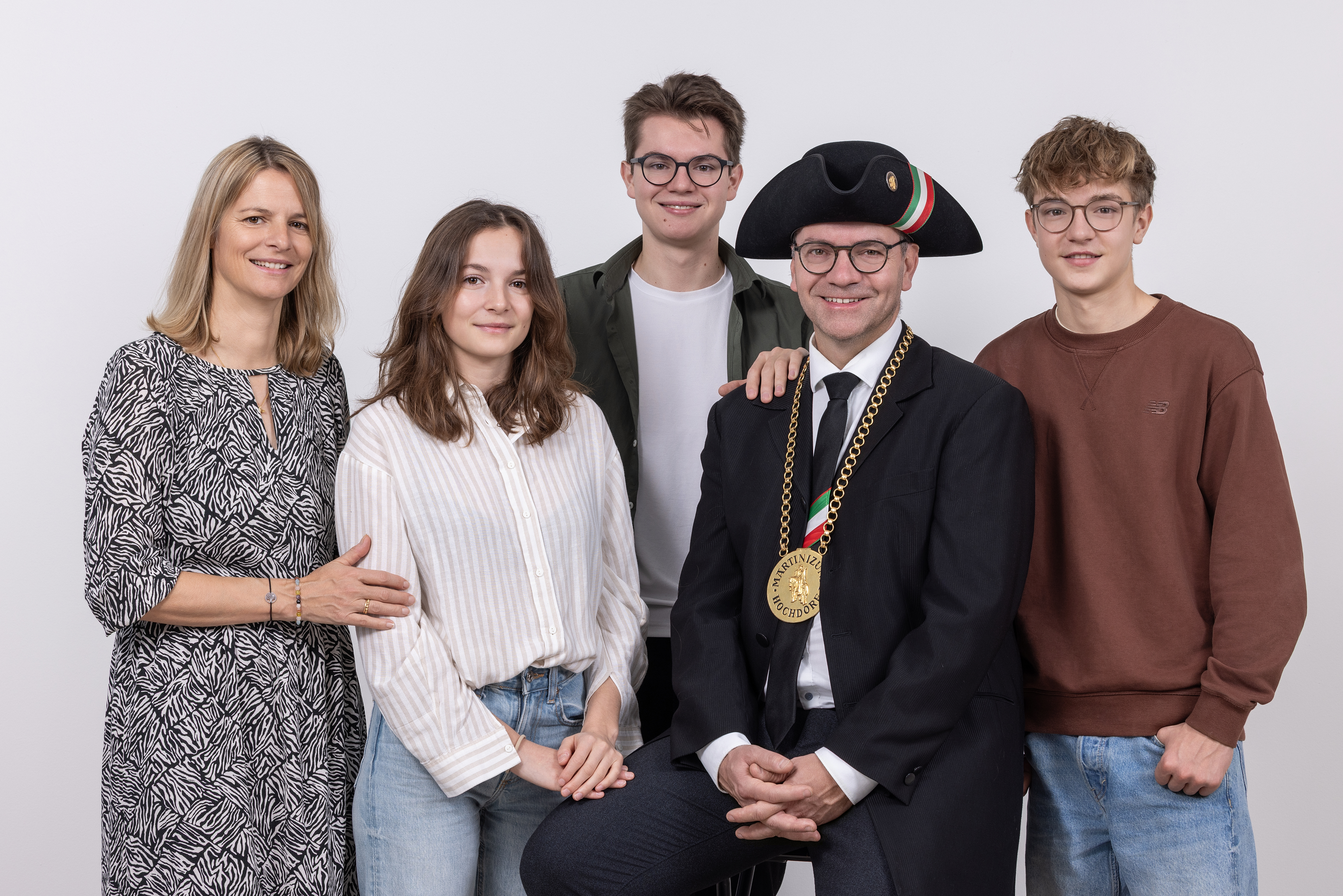 Ich bin in Hochdorf aufgewachsen an der Kleinwangenstrasse in Hochdorf und habe tatsächlich noch nie gezügelt. Ich lebe seit der Kindheit im Eltern- bzw. Grosselternhaus und durfte dieses von meiner Mutter Trudi Baumeler-Fuchs im Jahr 2004 übernehmen. Es ist ein schöner Zufall, dass sie genau am Fasnachts-Donnerstag Geburtstag feiern dürfte. Ich habe an der Universität Zürich Rechtswissenschaften studiert und arbeite seit gut 20 Jahren bei der SBB und bin ein richtiger Bähnler geworden. Martinimutter Judith (geborene Fleischlin) ist in Ballwil aufgewachsen und dann als Teenager mit ihrer Familie nach Hochdorf an den Pilatusblick umgezogen. Sie arbeitet als Pharma-Assistentin und Schwimmlehrerin. Wir haben drei Kinder: Julian (21) ist selbständiger Unternehmer (Concrete App), Chiara (19) studiert an der Pädagogischen Hochschule und Cédric (16) absolviert die Lehre bei der Firma Rogger Landmaschinen.