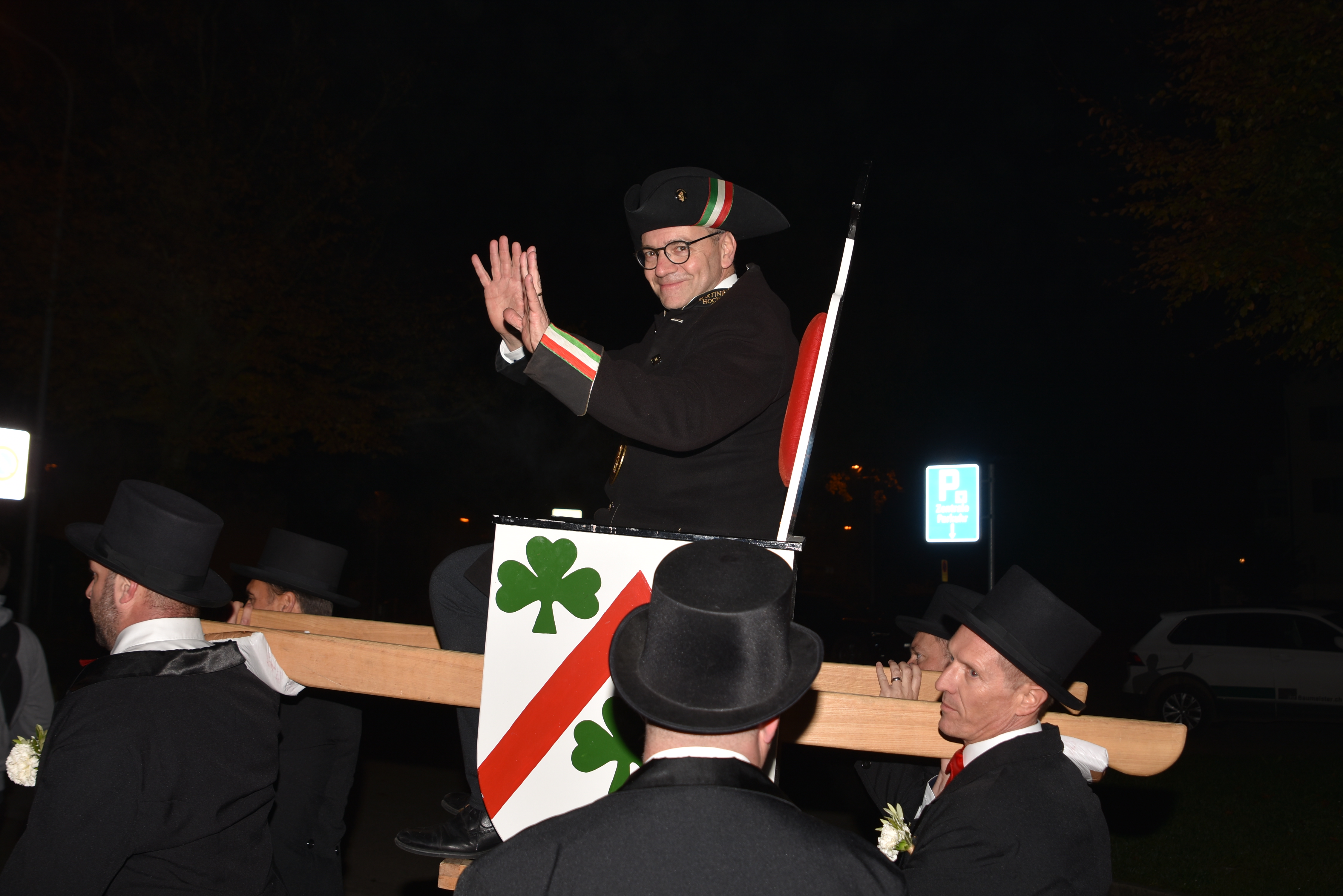 Nach diversen Gratulationen in der Braui wurde der neue Martinivater Michael Baumeler in der Sänfte zuerst an sein Zuhause, und später zur Zunftstube getragen. Das stimmungsvolle Bot ging beim traditionellen «Würstchenessen» erst in den frühen Morgenstunden zu Ende. Jürg Wicki