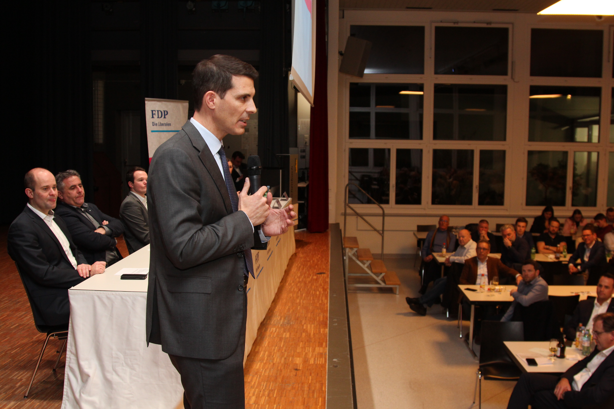 Der Abend schloss mit einer Gesprächsrunde zwischen den anwesenden FDP-Bundesparlamentariern. Moderatorin Jacqueline Theiler sprach als erste Baustelle den Fachkräftemangel an. Der FDP-Präsident der Schweiz ortete ein grosses Potenzial bei den Frauen und wies darauf hin, dass durch eine Individualbesteuerung deren Beteiligung am Arbeitsmarkt zunehmen würde. Ständerat Damian Müller wies auf die Bedeutung der jungen Bevölkerungsgruppe hin, dass sie frühzeitig in den Arbeitsprozess integriert werden müsse, indem zugleich passende Jobs angeboten werden. Eine weitere Sorge bereiten ihm und der Bevölkerung die steigenden Mieten, die wiederum Resultat eines zu knappen Wohnungsangebots seien. Daher gelte es, das verdichtete Bauen zu beschleunigen. Ein letzter Themenbereich betraf die Energieversorgung der Schweiz. Thierry Burkart forderte eine erhöhte inländische Energieproduktion und ebenfalls mehr Speicherkapazitäten. Denn Strom sei essenziell und eine Schlüsselgrundlage für den Wohlstand der gesamten Nation.