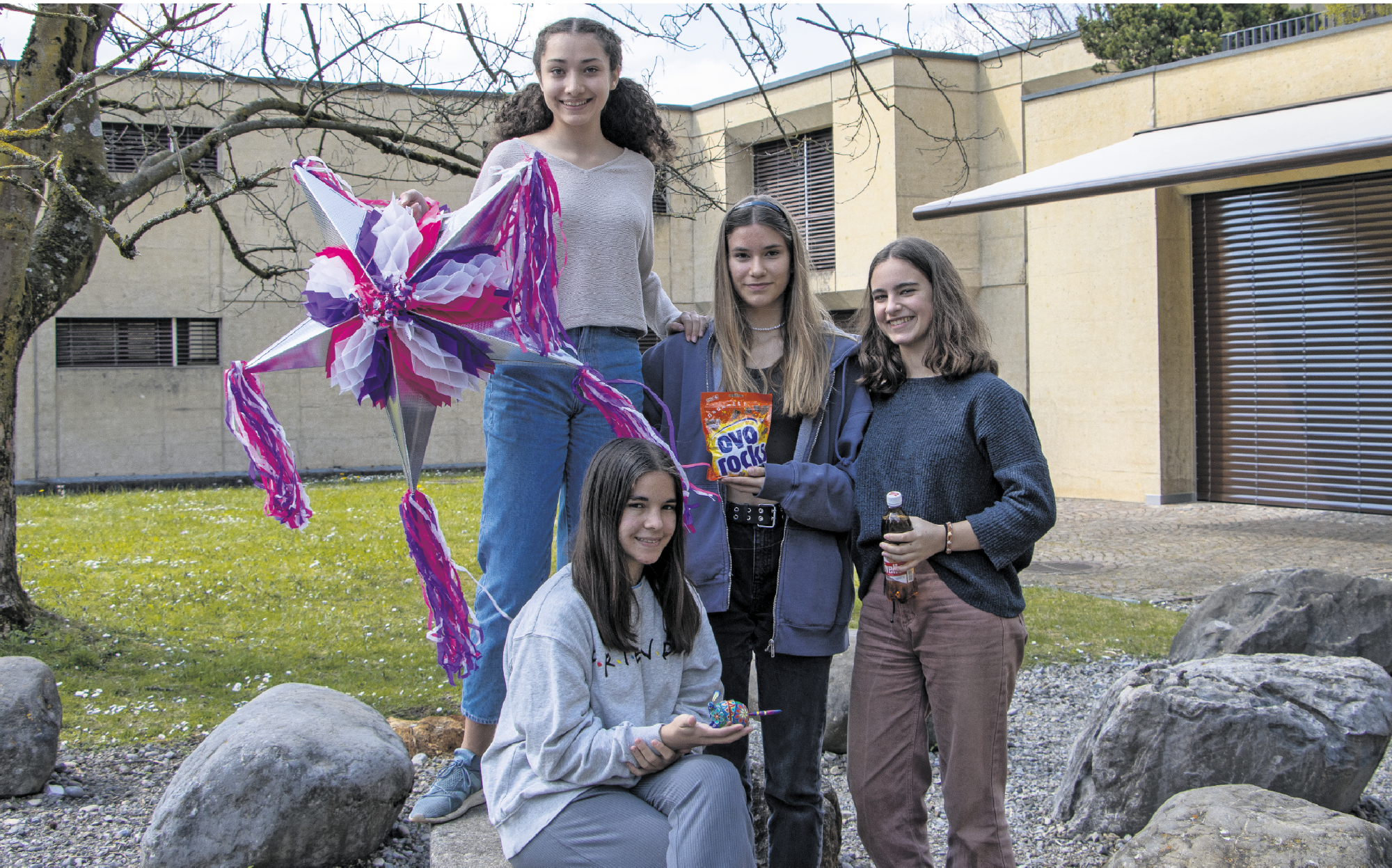 Die Mexikanerinnen wissen bereits, was sie Julia und Olivia zeigen wollen: Das mexikanische Essen und die Kultur ihres Heimatlandes. Ein Muss: Mit verbundenen Augen auf eine Piñata einschlagen. Das ist eine mit Süssigkeiten gefüllte, in der Luft hängende Tüte, welche in Mexiko hauptsächlich an Geburtstagen zur Tradition gehört.