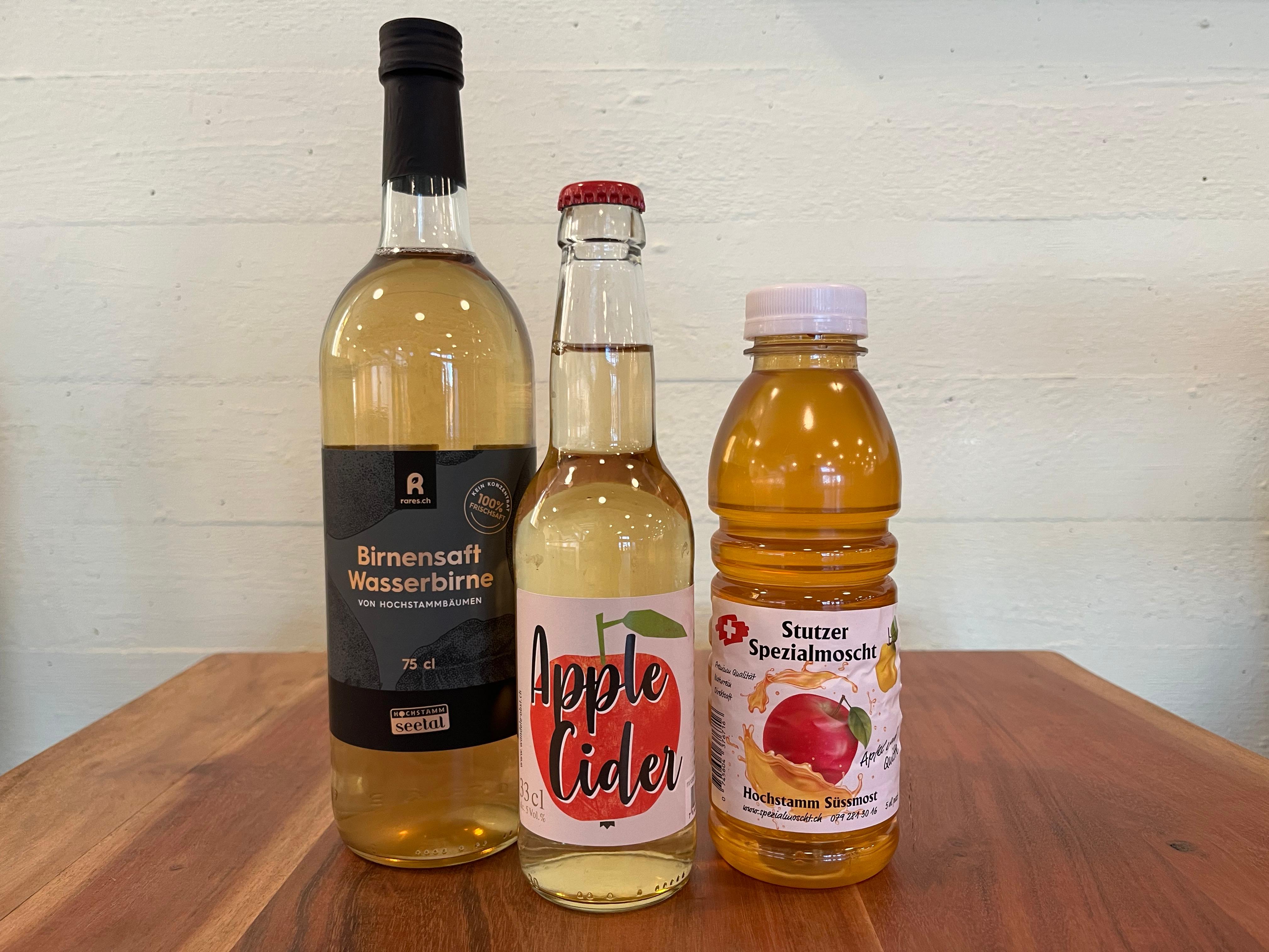 • Apfelsaft, Birnensaft, Süssmost, Apfel/Birnen-Schorle